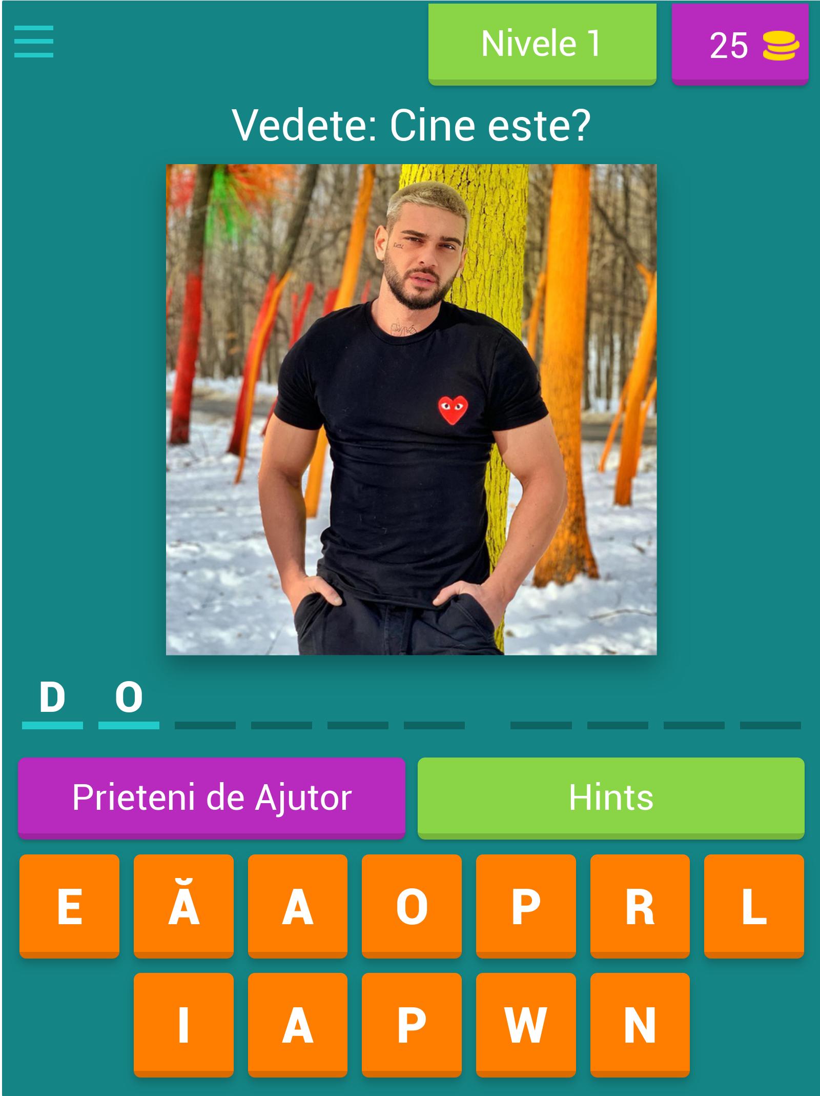 Угадай звезду в Румынии! Начните тест прямо сейчас и посмотрите, сможете ли вы пройти 40 уровней, которые я подготовил. Если вы поймете, кто находится на картинке, то вы очень хорошая загадка, и для этого у вас скоро будет больше приложений (даже с искаженными звездами или почему, например, с автомобилями, знаменитостями из других стран).